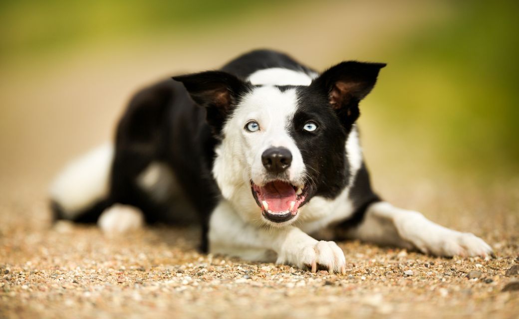 If your answer is yes! You are not alone. There can be different reasons for this but it is usually when they have seen something coming such as a car or another dog. They stare at the trigger intently and often when it gets level they may jump up and lunge. These dogs could be nervous or they could be anticipating a chase, lowering themselves to the ground so they aren't so visible while they watch the approach and decide their next move. These Collies are often referred to as clappers. I am often asked what to do when a Collie goes splat on the floor. Usually the owner says the dog can't respond to them and are too strong to be moved. This is because they have got stuck in eyeing mode. To work through this problem I teach a 'Let's Go' cue. It means I am changing direction so come with me. I first teach the dog the understanding away from any triggers using the following steps. Say 'Let's Go' and place a treat in front of the dogs nose. Change direction and give the dog the treat Say 'Let's Go' change direction and when the dog turns with you give the dog a treat. If your dog is slow to turn then run for the first 1-2 steps to encourage a speedier turn to you. You can use a toy instead of treats if that is more rewarding for your dog. Make sure the cue is cheery and sharp so it is a clear attention cue. Once your dog is responding well you can introduce the cue in the presence of triggers. Start at a distance you know your dog can respond. It is important to cue your dog before they go into the down so they can still respond so if you see them start to stare or lower their head use the cue to keep them on their feet and moving. With repetition you will be able to reduce the distance to the trigger. And finally be able to walk your dog without them going splat onto the floor. If you want to learn more about Border Collies then check out our course Understand Your Border Collie If you would like help with training then sign up to the waitlist to be notified when our online membership the Border Collie Academy opens again